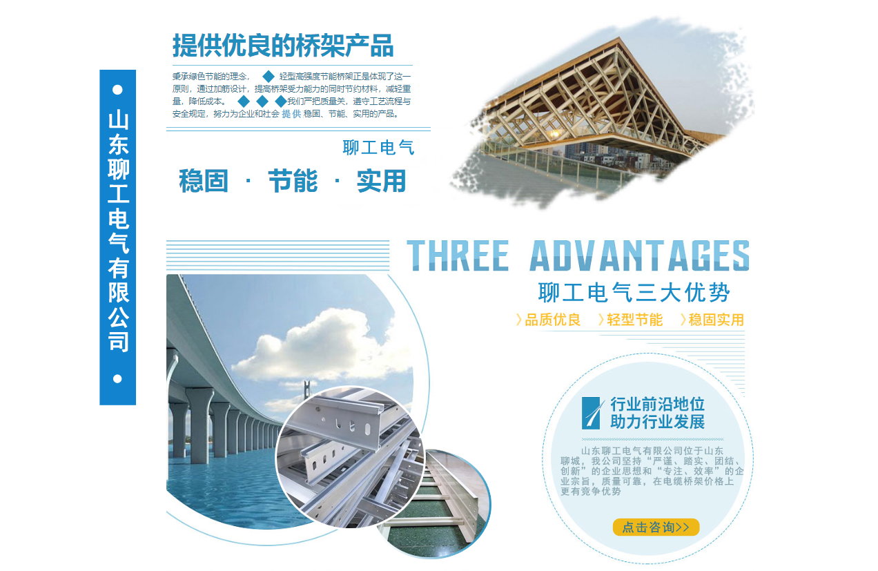 山東聊工電氣有限公司位于山東聊城,是一家銷售各類橋架的公司,公司主營鍍鋅防火噴塑橋架,鍍鋅防火電纜橋架 ,不銹鋼電纜橋架,熱浸鋅電纜橋架,鋁合金電纜橋架,熱鍍鋅電纜橋架,梯式電纜橋架等我公司堅(jiān)持“嚴(yán)謹(jǐn)、踏實(shí)、團(tuán)結(jié)、創(chuàng)新”的企業(yè)思想和“專注、效率”的企業(yè)宗旨,質(zhì)量可靠,在電纜橋架價(jià)格上更有競爭優(yōu)勢。公司追求品質(zhì),配有研發(fā)人員,進(jìn)行產(chǎn)品的改革和創(chuàng)新,服務(wù)先進(jìn)走出了一條富有企業(yè)特色的可持續(xù)化發(fā)展之路! 我公司鄭重向你承諾:保證最好的質(zhì)量,以低的價(jià)格,完善的售后服務(wù),來答謝新老客戶??商崆半娫捖?lián)系。...